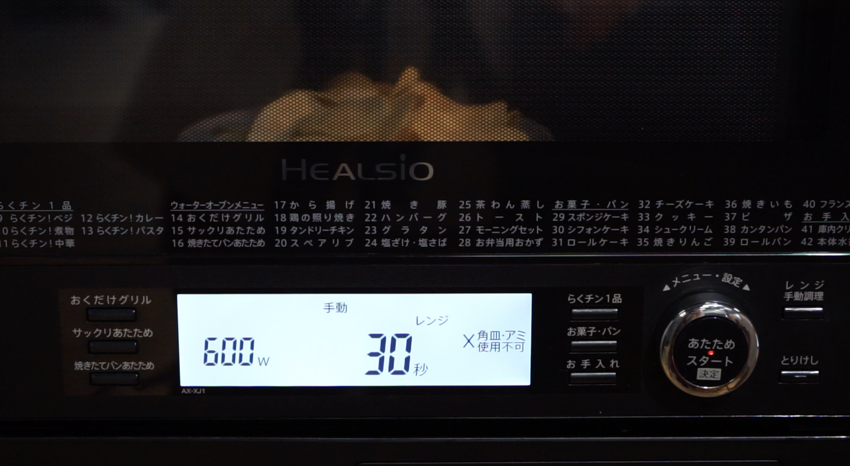 電子レンジで約30秒温めるだけ。(※温めるときは必ず耐熱皿に移すこと)